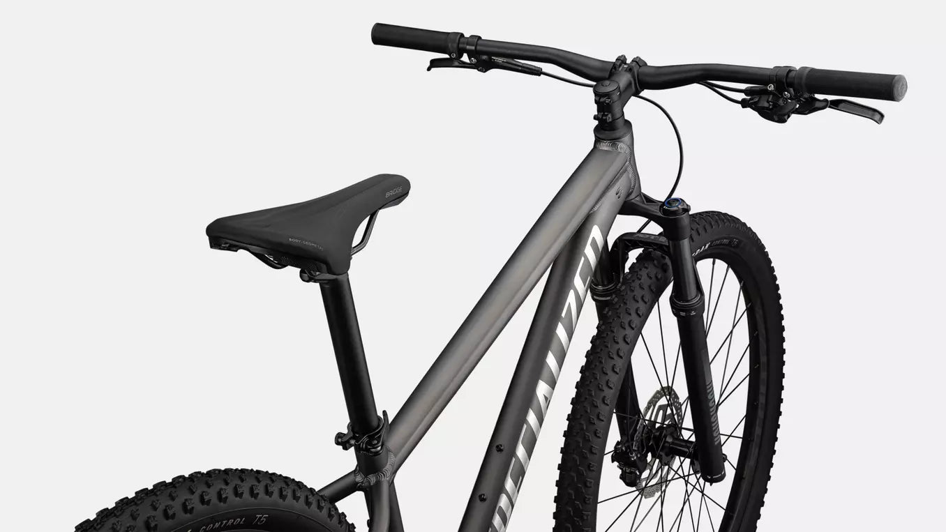 - Un corazón de oro, presentado en nuestro aluminio A1 Premium liviano pero duradero, el marco de aluminio conificado del Rockhopper presenta tubos superiores e inferiores hidroformados para mantener el peso bajo y la resistencia alta, al mismo tiempo que brinda mayor espacio libre entre ejes, enrutamiento interno de cables elegante y compatibilidad con tija telescópica.